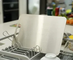 Unlike plastic and wood, Katuchef’s TitaniumShield™ surface is antibacterial, odor-resistant, and non-porous, preventing bacteria buildup and cross-contamination.